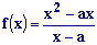 1.- Observa que para valores de x menores que a (izquierda de a), y también para valores de x mayores que a (derecha de a), la gráfica es una parábola que se interrumpe en x=a (hueco). El punto