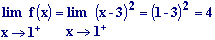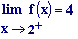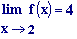 Por tanto al coincidir el límite por la derecha y por la izquierda, existe el límite de la función cuando x ® 2, y este límite es 4. En general existe el límite cuando x® a y es f(a). La función está