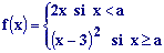 2.-Haz una tabla de valores en tu cuaderno dando a x los valores -1, -0.75, -0.5, -0.25, 0, 0.25, 0.5, 0.75 y observa en la escena los valores de la función y hacia donde se dirige el punto P. Deduce a qué tiende la función (valores de y) cuando x tiende a 1 por la izquierda (x<1). 3.-Observa que para valores mayores que a (a la derecha de a), la gráfica es parte de una parábola que comienza en el punto (a,(a-3)2). En el inicio este punto es (1,4), que ahora sí pertenece a la función, pues en la definición de la misma indica x ³ a |