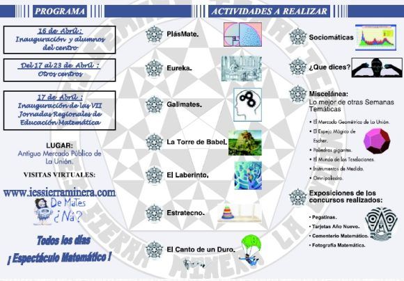 El IES Sierra Minera organiza su VII Semana Matemática. Las actividades se realizarán en el Mercado Público de La Unión del 16 al 23 de abril